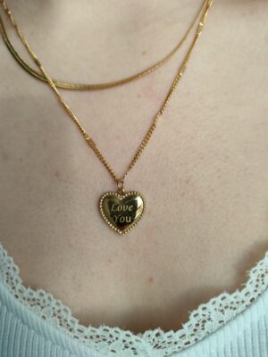 Stal chirurgiczna złoty naszyjnik podwójny serce żmijka