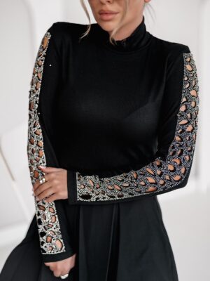 Bluzk damska czarna S złoty rękaw   Bluzka bardzo przyjemna w dotyku, uszyty z dużą starannością z wysokiej jakości materiału. Najlepszy wybór na co dzień jak i do bardziej eleganckich stylizacji. Rozmiar uniwersalny   Wymiary: Długość całkowita 61 cm. Szerokość od pachy do pachy 41-48 cm. Długość rękawa od ramienia 58 cm. Długość rękawa od wewnątrz …