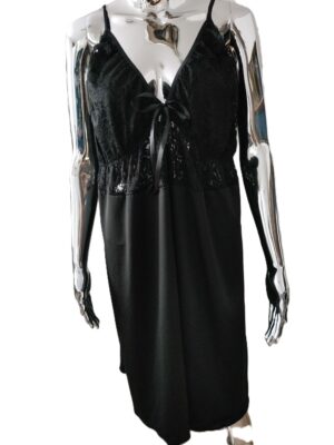 Koszulka nocna piżama czarna halka damska wygodna do spania duże rozmiary   Luźny krój. Produkt stworzony dla osób plus size. Fason zapewnia komfort podczas snu. Koszulka dopasowuje się do figury. Miękka w dotyku tkanina. Ramiączka wąskie, z regulacją. Pod biustem gumka. Miękkie miseczki, dekolt wykończony koronką i ozdobną kokardą. Dekolt w kształcie litery V. Idealnie …