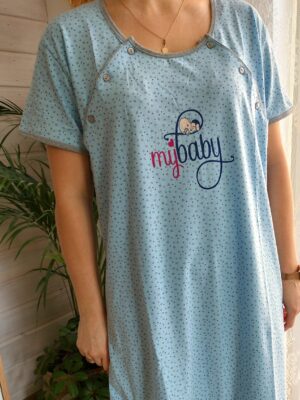 Koszula nocna piżama ciążowa do karmienia niebieska XXL