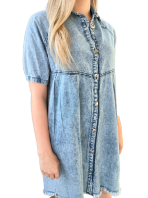 Pierwotna cena wynosiła: 69.00zł.49.00złAktualna cena wynosi: 49.00zł.Sukienka damska jeansowa Cechy produktu: Cienki jeans idealny na ciepłe dni Kołnierzyk Karczek Odcinana pod biustem Krótki rękaw wykończony gumką Zapinana na guziki Wystrzępiona u dołu Skład materiału 100% bawełna Wymiary mierzone na płasko: Rozmiar S Długość całkowita 87 cm Długość rękawka od szyi 35 cm Szerokość od pachy do pachy 46 cm Szerokość …