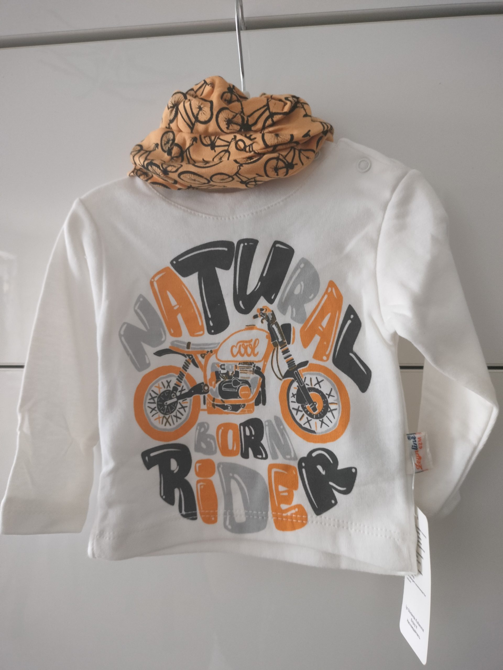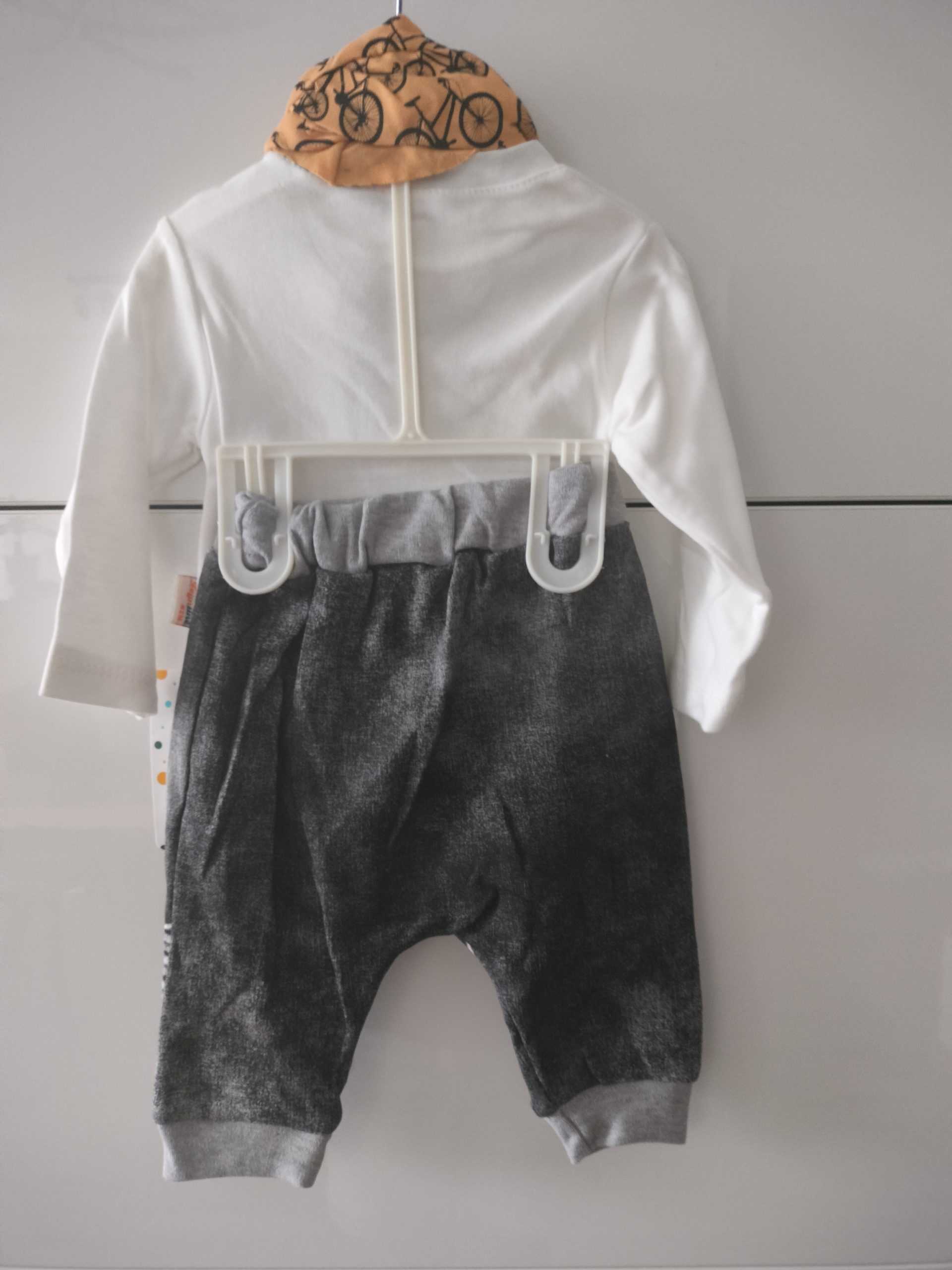 - Komplet składa się z trzech części: bluzeczka, spodnie i bandamka na szyję