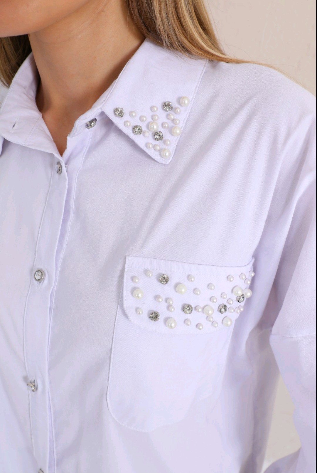 • Na kieszeniach i kołnierzyku ozdobne perełki i kamienie